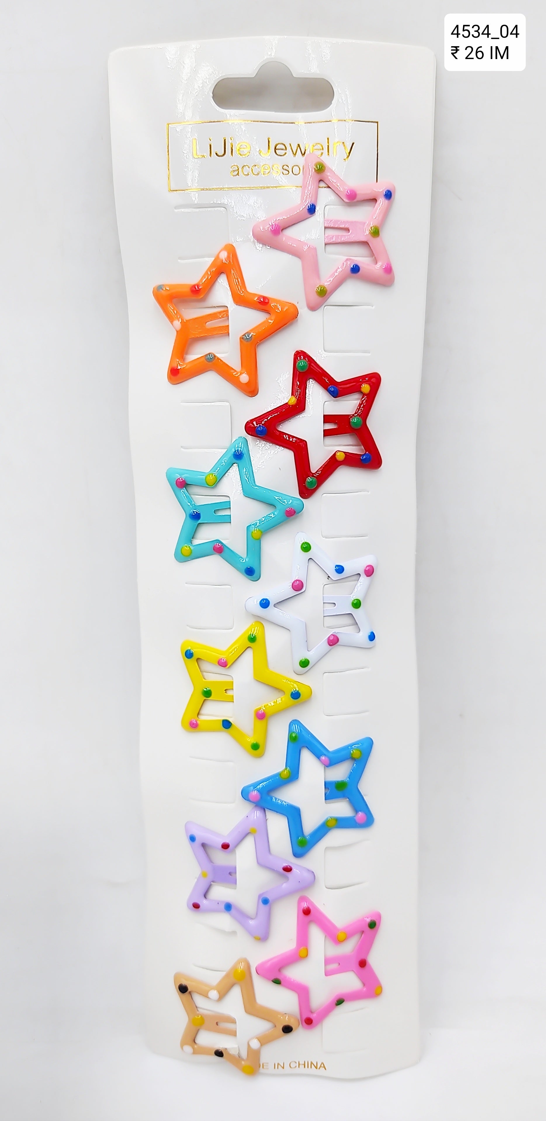 Brighten up your little one’s hairstyle with our 10-Piece Colorful Holo Star & Polka Dot Hair Clip Set! Designed for girls and kids, these adorable hair clips feature a fun combination of holographic stars and playful polka dot patterns. The vibrant colors and shiny finish add a cheerful and trendy touch to any outfit, making them perfect for parties, school days, or casual outings.