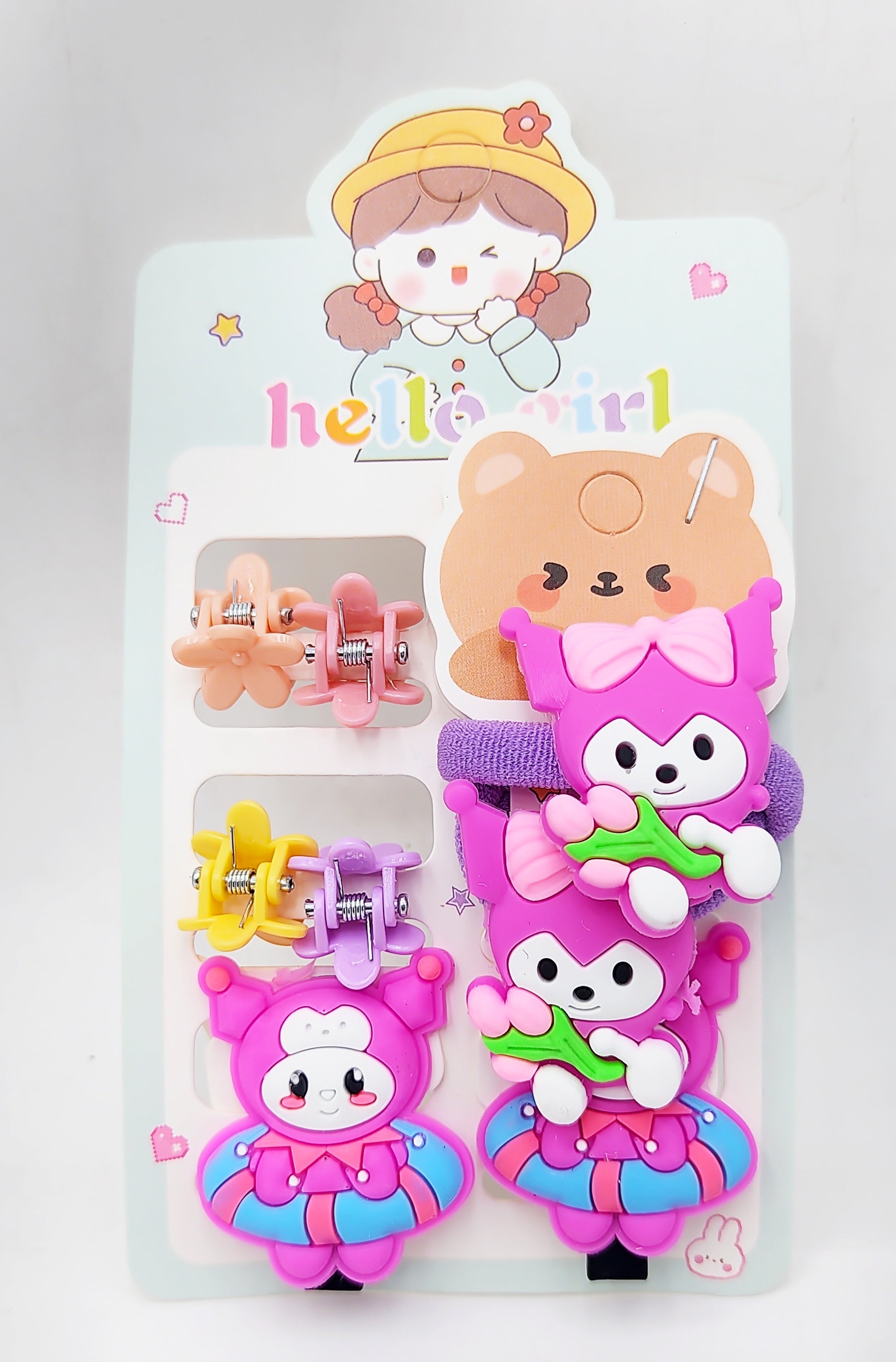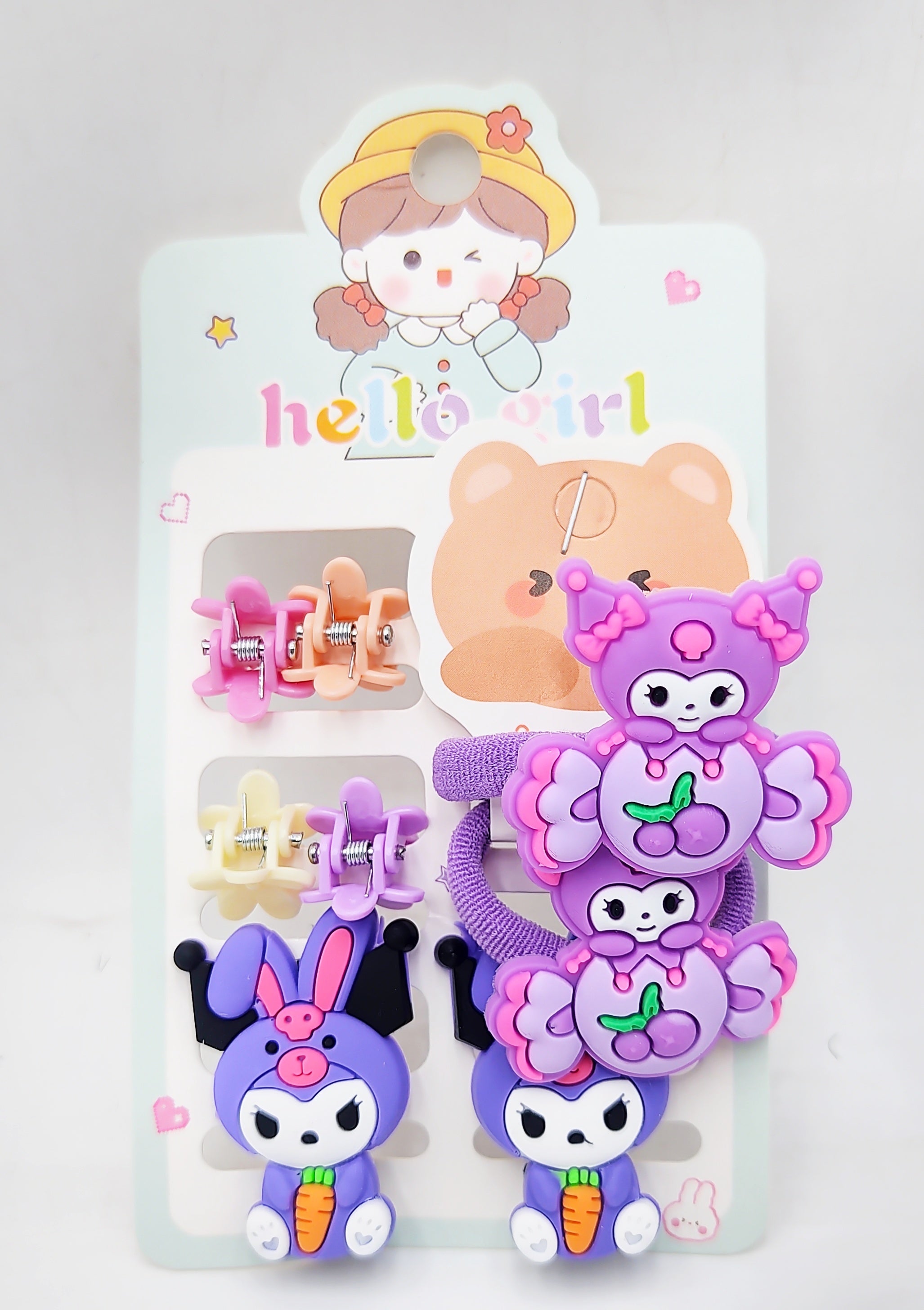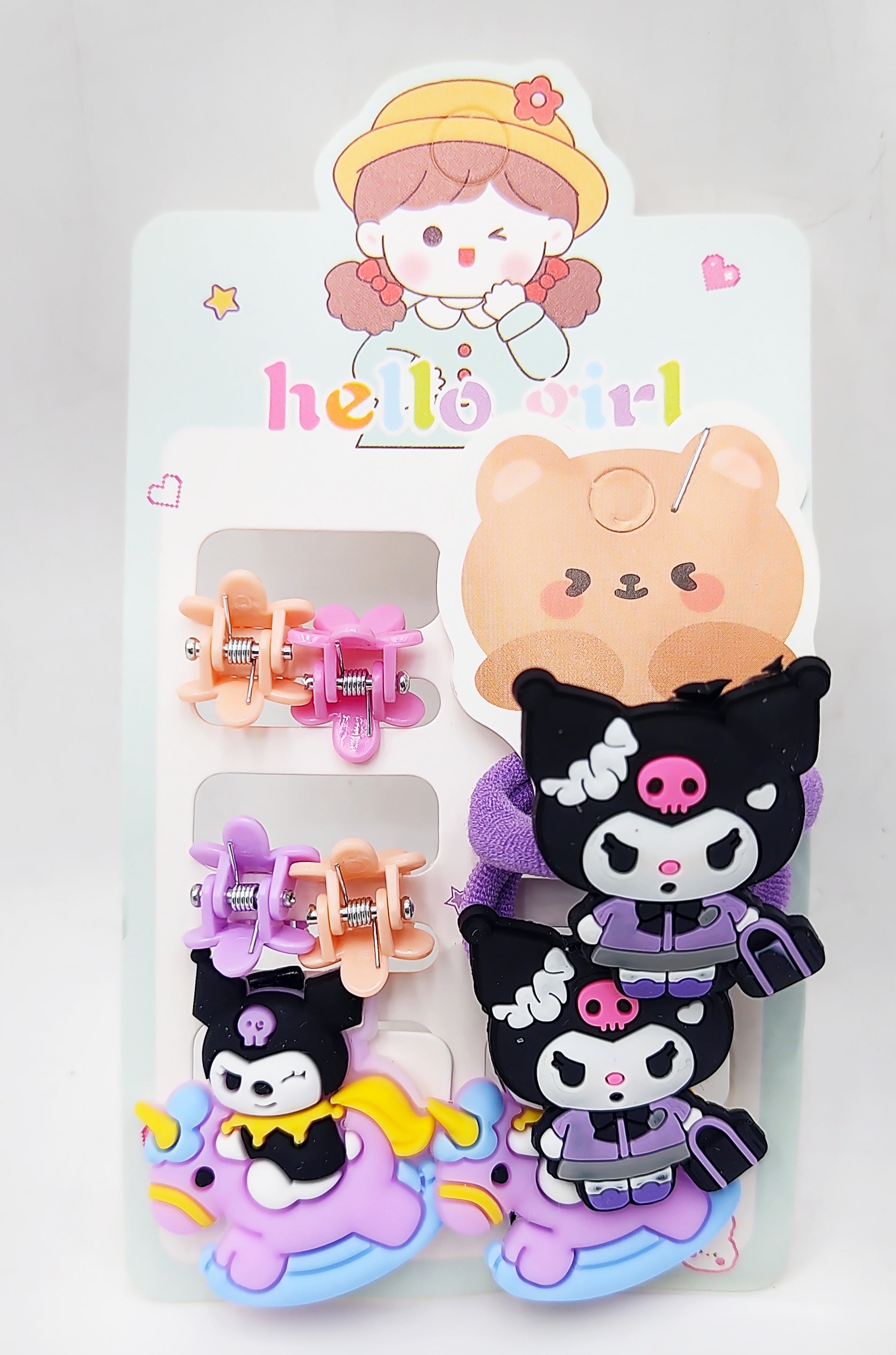 Make your little one's hairstyle extra special with the Pack of 12 Pcs Cute Kuromi Hair Clips Set! Inspired by the charming Sanrio character Kuromi, these delightful hair accessories are perfect for baby girls, kids, and cartoon lovers. The set includes a variety of baby bow hair clips and stylish cartoon hairpins, designed to add a playful and adorable touch to any outfit.