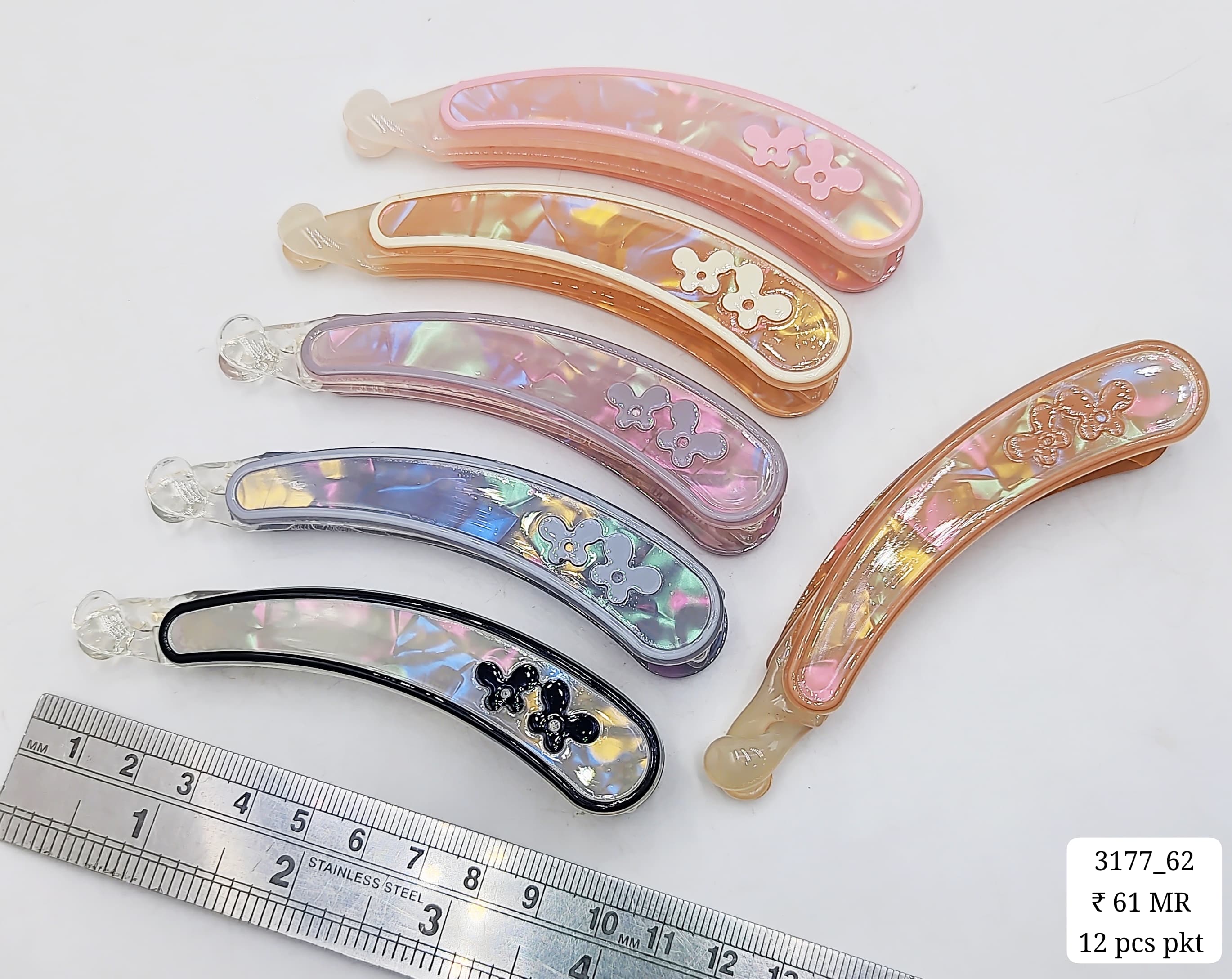 As an industry expert, I can confidently say that our Impression Acrylic Banana Clips are a must-have hair accessory. Made with durable acrylic material, these transparent clips provide a secure hold for all hair types. Each pack comes with 12 clips, making it a great value for any fashionista.