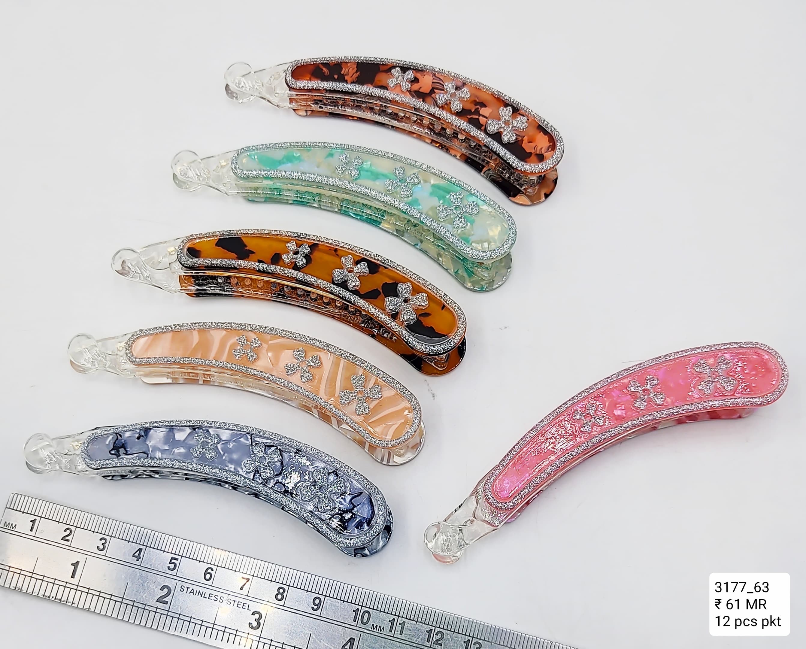 Impression Banana Hair Clip Classic Fashionable Printed Twist Clip Banana Clips pack of 12pcs)