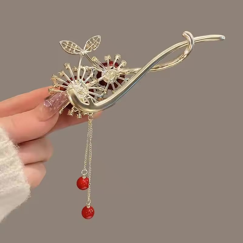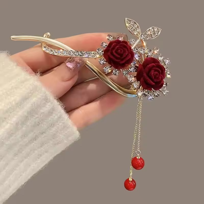 Metal Tassel Hair Clip Vintage Flower Hair Shark Clip Hairpin Women Elegant 2025 New Hair Clip Hair Accessories